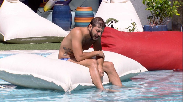 Caio segue aproveitando a piscina do BBB21. Sozinho, o brother começa a cantar. Enquanto isso, os demais brothers dormem na casa mais vigiada do Brasil