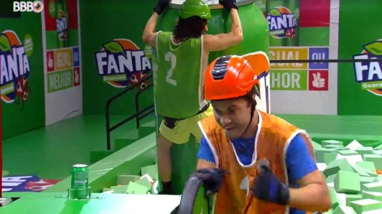 Segundo as explicações de Tiago Leifert, esta é uma prova de revezamento. O objetivo é trazer duas latas de refrigerante até o outro lado da prova para a sua dupla. O brother com o colete laranja pega uma lata, sobe em uma lata gigante e o colete verde traz o parceiro usando as rodas o mais rápido possível. Quando o colete laranja chegar ele deve pular da lata e depositar em um dos nichos.