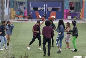 Os brothers estão no gramado da casa do BBB21, ouvindo as músicas dos emparedados antes de mais u...