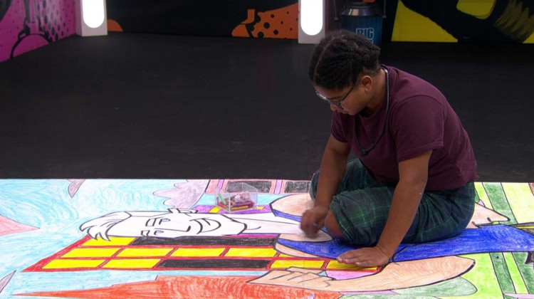 O desafio dessa semana é um desenho do Líder, dessa vez de Jonas. A participante deverá colorir um desenho do brother, exatamente como o gabarito apresentado no cômodo. Para isso, ela tem à disposição alguns gizes de cera de diferentes cores.