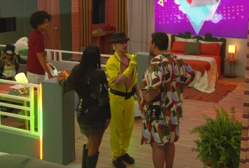 Durante a Festa da Líder Samira, Babu Santana termina de conversar com Breno e engata um papo com...